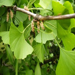 Gingko: Nom scientifique : Ginkgo biloba. Autres noms : Arbre aux quarante écus, Bai guo. Résumé : Le gingko est employé en Chine depuis longtemps pour soigner les problèmes de circulation cérébrale et d'asthme. Description : Arbre à un ou plusieurs troncs à grandes feuilles fines. Habitat et culture : Originaire de Chine, il serait le plus vieil arbre existant sur terre (son apparition remonterait à 190 millions d'années. Aujourd'hui il est cultivé en France, au Japon aux USA et en Chine. Parties utilisées : Feuilles, graines. Constituants : gingkolides, flavonoïdes, bilobalides.Usages : Traite les difficultés respiratoires (comme l'asthme) en diminuant le mucus. Ils soigne l'incontinence urinaire en tonifiant la vessie. De plus, en favorisant la circulation cérébrale, il favorise la mémoire, c'est pourquoi de nombreuses personnes âgées l'utilise en raison de ses vertus. Effets : Stimulation de la circulation sanguine, et les phénomènes d’acrocyanose dont souffrent les fumeurs