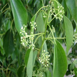 Le ravensare (ravensara aromatica en latin oucinnamomum camphora) est un arbre touffu ressemblant au laurier mais pouvant mesurer jusqu’à 25 mètres de hauteur. Il dispose d’une écorce de couleur rougeâtre et porte des feuilles ovales, larges, persistantes et assez sombres. Ses nombreuses fleurs sont vertes et présentent trois pétales. Les fleurs de ravensare portent un fruit, divisé en six quartiers et contenant chacun une graine (une amande jaune aux propriétés stimulantes). Le ravensare fait partie de la famille des lauracées.